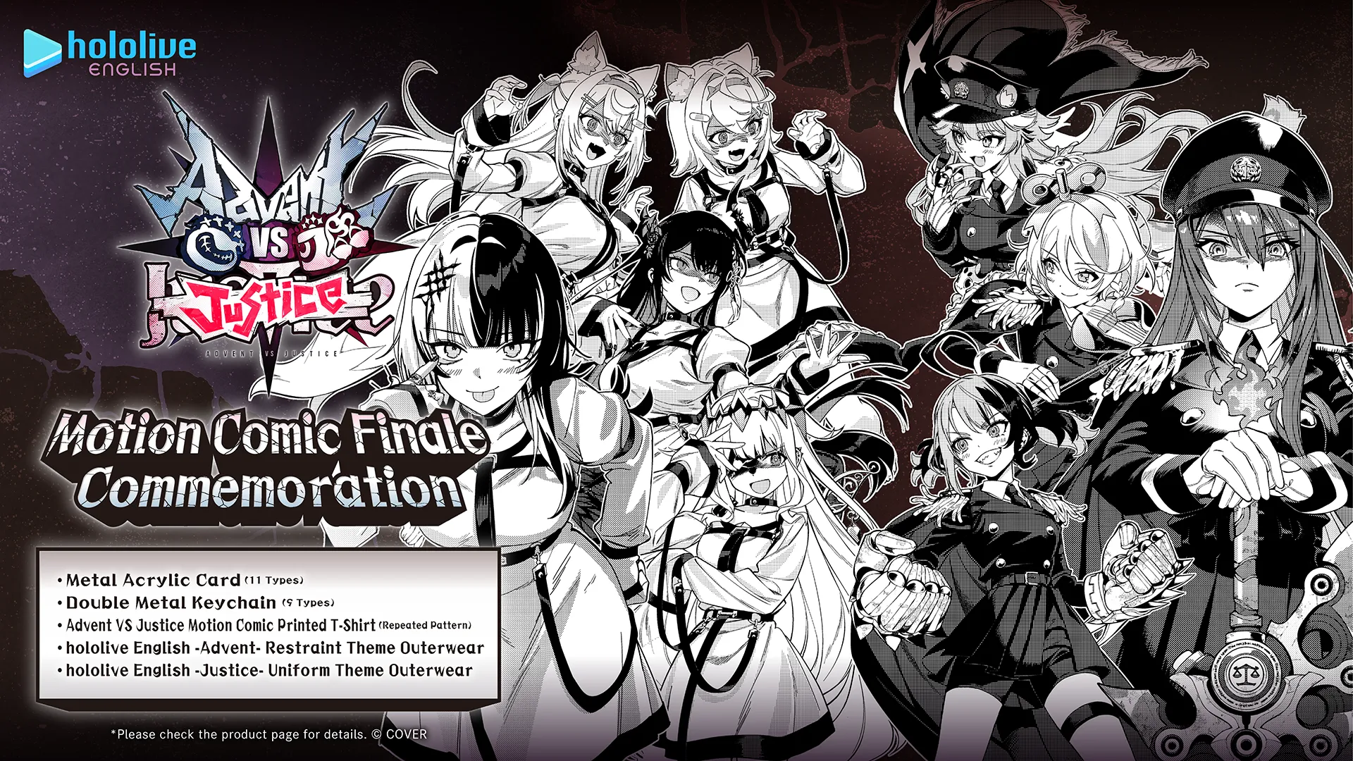 To celebrate the release of the final episode of the motion comic series, the hololive English Advent VS Justice Motion Comic Finale Commemoration merchandise is available for pre-orders until April 6th 18:00 JST.